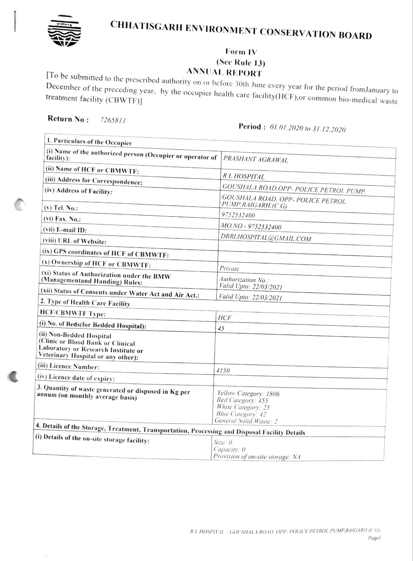 Address: Gaushala Road, Police Line, Raigarh, ChhattisgarhPhone: +91-91796-18171, +91-9630001100Email: drrlhospital@gmail.com